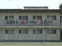 運動場のクラブハウスには、生徒会の皆さんの手による体育祭スローガンが掲げられました。体育祭にまた一段と燃えましょう!