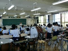 ブラスバンド部は、体育祭や町民運動会での演奏を控えていますので、今日も熱心に練習が進められています。別室でのパート練習もしていますので、顧問の先生も大変です。