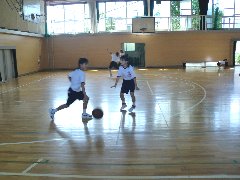 運動場では、稲沢市内の学校をお招きして、サッカー部が試合をしていました。ちょうど運よく、コーナーキックからヘディングシュートをするシーンを見かけました。屋内運動場では、バスケットボール部が、基本中の基本、1対1の練習に取り組んでいました。1対1ができれば、次へのステップも簡単です。皆さん、頑張ってやっていきましょう。