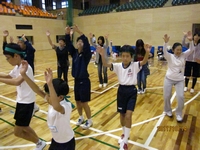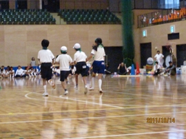 「一宮市手をつなぐ子らの運動会」が、総合体育館で行われました。10組の皆さんが参加しました。ボールをドリブルして運んだり、縄跳びをしながら走ったり、玉入れやダンスをしました。思いっきり体を動かしただけでなく、友だちの演技に大きな声援を送るなど、生き生きとした活動ができました。また、出身小学校の後輩の皆さんとも、小学校時代に戻ったかのように、楽しく遊んであげ、お兄さんのように振舞うほほえましい姿が見られ、とても良い一日になりました。