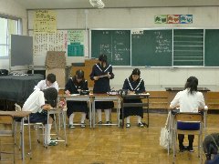 今回は、救急車の利用を有料化することは是か非か。をテーマに討論をします。むやみやたらに救急車を呼ぶ人が増えたことが、このような提案がなされる一つの理由なのでしょうが、かといって緊急なときにお金のことを言っているのはどうなのか。面白いテーマですね。討論は2チームに分かれ、肯定派否定派両方の意見を戦わせます。音楽室は、緊張感に包まれ、本番さながらの様相です。