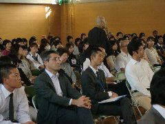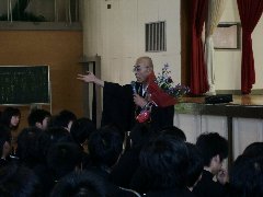そのパワフルなこと!第一声の『こんにちは』もさることながら、席を立っての『失礼しますー呼応』生徒や、保護者への投げかけ!『今のお父さん、お母さんの下にもう一度生まれたいか?』『今の夫や妻をもう一度選ぶか?』『担任が好きか?』