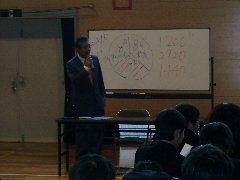 まずは、時間は誰にでも平等で、限られているというお話です。毎日の学校と、睡眠で人間は16時間を使います。すると残されたのは誰もが8時間です。この8時間をどう使うのか。自分には目標があり、それを手に入れるためには何かを捨てなければなりません。あれもこれもという訳にはいかないのです。夢の実現のためには、この8時間を何に使うのが大切かというお話です。
