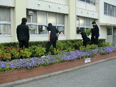 本校では、始業前に早めに登校してボランティア活動をしてくれる3年生の男子生徒が何人もいます。夏から続けてきた、花壇の水やりを、寒くなった今でもやってくれます。何も見返りはないのですが、学校のために、自分の心を磨くために続けてくれることはとても嬉しいことです。今日は、花壇の模様替えの手伝いです。水遣りを続けてくれたサルビアの花も、そろそろ見納めとなりましたので、花を全て抜きました。毎日の変化を見てきた花ですから、なんとなくさびしげに活動してくれたのが印象的でした。この花壇は、間もなくビオラの花壇に生まれ変わり、また水やりを彼らが続けてくれます。