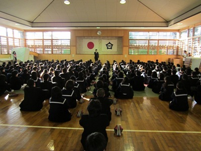 1年生は、7時間目のチャレンジタイムで、学年集会を開きました。2学期を振り返るとともに、冬休み中の生活や学習、部活動についての心構えや連絡事項を確認しました。先日の保護者会でお配りした「冬休みを迎えるにあたって」の内容を生徒のみなさんにもプリントで確認しながら、健康で、そして有意義な冬休みとなるように、また、3学期によいスタートがきれるようにと指導しています。