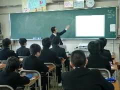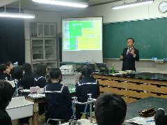 近隣の高等学校の先生をお招きし、各校の学科の特徴を説明していただく会を、2年生で開きました。「普通科」ってどんな勉強をするの?「工業科」って技術の時間ばかりなの?考えてみると、高校の名前は少し知っているのですが、学科については知らないことばかりです。生徒の皆さんは、8つの高校の学科から興味のある学科を3つ選んで、時間を区切って見学をしながらお話を聞いています。