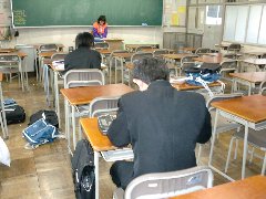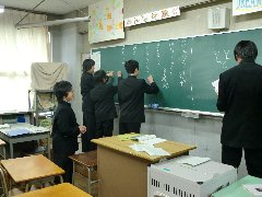 総合テストまで、残すところ2日となりました。今日は月曜日ですから、授業は6時間で終わりですが、その後各自の意思で教室に残って質問学習会を行っています。学級によって残っている人数に差があったので聞いてみたら、教科ごとに教室が異なっているのだそうです。数学の質問者が集まる、物理室は大盛況のようです。
