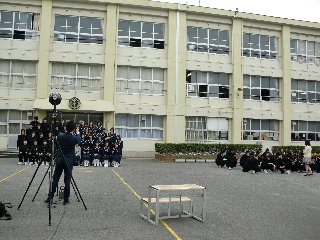 担任の先生と学年の先生がいっしょになって学級写真を撮っています。緊張の中にも笑顔が見られるようになって来ました。また学年によっては、正式な写真だけでなく、学年オリジナルの写真を桜の下などで撮り、学級に掲示する予定にしています。今日欠席の生徒さんがいるクラスは、金曜日に再度撮影をしまが、それでも揃わなければ、本日の写真を正式なものとする予定です。