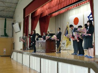 屋内運動場では、今中生として頑張ってほしいことや続けてほしいことなどを熱く語っていただき、生徒の皆さんもその思いを十分に受け止めました。最後の校歌をいっしょに歌い、万雷の拍手の中を退場されました。先生方、ご指導ありがとうございました。いつまでもお元気で、機会があればまた今中に来てください。