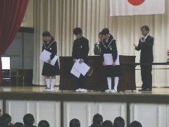 24年度、前期の学級役員、生徒会役員さんの任命式が行われました。皆さん、決意も新たに自分の役割を果たそうとしています。また、生徒会役員さんは、23年度後期の役員さんとの引継ぎ式も行われました。前期最初の大きな行事、クラスマッチに向けて全校一致団結して協力をしていきましょう。