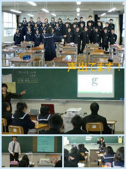 音楽も英語もとてもよく声が出ています。音楽では、指揮者を真剣に見つめ、口を縦に大きく開けて校歌を歌っていました。それに負けないぐらいの大きさで英単語も発音していました。「おじいさんの『g』」などど言いながらスクリーンを見つめ、目と耳で覚えます。