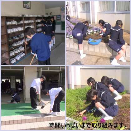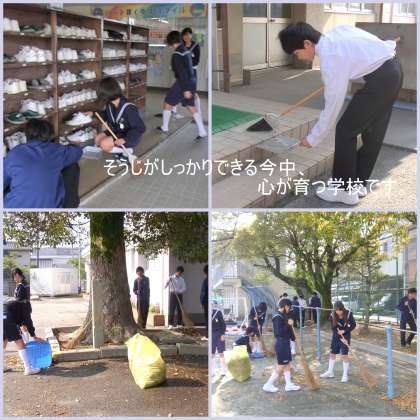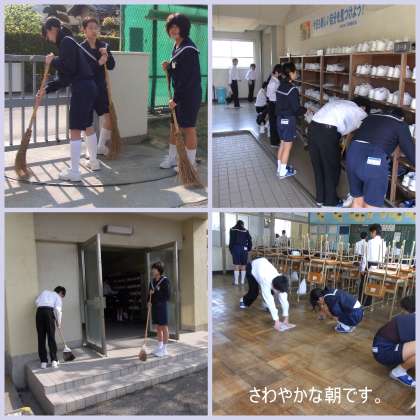 前日の雨がうそのように、さわやかな朝を迎えました。今日も朝から全校で一生懸命に掃除に取り組みます。