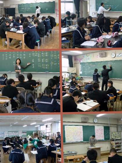 非常に落ち着いた雰囲気の中でどのクラスも授業が進んでいます。3年生の理科では、瞬間の速さと平均の速さについて学習していました。この部分は、どの生徒さんも苦手とする部分です。「は・じ・き」の関係を忘れてしまうんですね。でもここは、速さの単位を一つ覚えることで全て解けるようになるんですよ。