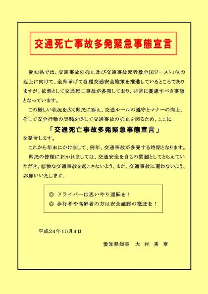 10月12日 交通死亡事故多発緊急事態宣言発令