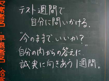 日曜日の今日も化学室では、3年生の質問教室が開かれています。また、各教室の背面黒板には、担任の先生からのメッセージがたくさんありました。