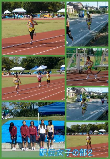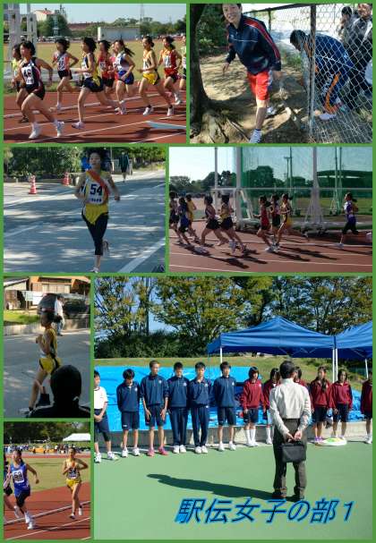 女子と男子のレースの様子です。一本のたすきを女子は5名、男子は6名でつないで走ります。西尾張地区の50チーム以上が参加して、盛大な大会になっています。写真は女子全部と、男子の前半までです。男子の後半は、後ほどアップします。
