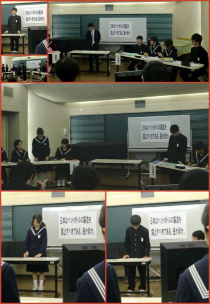 昨日は、地域文化広場でディベート大会の準々決勝が行われました。お互いに磨かれた弁論が戦わされ、とても白熱した戦いとなりました。コミュニケーション点もわずか1点差、総合評価は1−2で破れました。選手の皆さんの健闘をたたえたいと思います。
