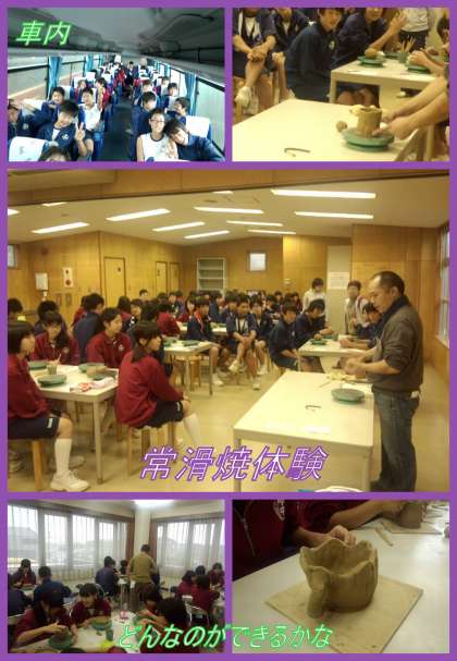 あいにくの雨模様となりましたが、3年生の皆さんは常滑方面に校外学習に出かけました。今日は常滑にあるセラモールで常滑焼を体験しています。写真にもあるように、粘土をこね世界で一つのオリジナル作品に挑戦しました。天候が回復すれば、臨空ビーチで砂の造形に挑戦する予定でしたが、今日の午後は名古屋市科学館の見学になりました。