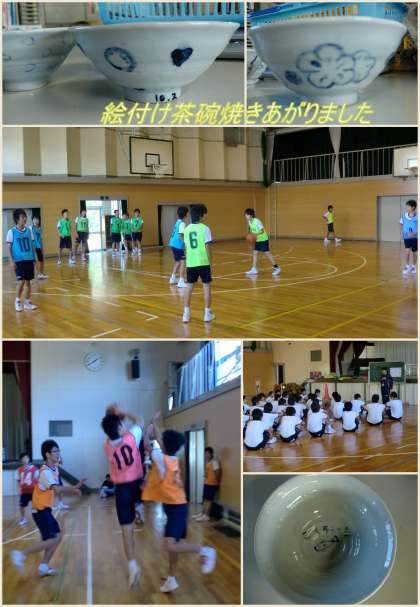 1年生の皆さんが、今月はじめに行った宿泊学習の体験学習の一つに焼き物体験があります。その作品が今日届きました。上薬を塗り、渋く光る茶碗になっています。描いた絵は個人の思い思いのものですが、中には自分の名前や作成の月日を入れている人もいました。作品の一部は、現在行われている作品展「石刀ギャラリー」に今日の夕方から飾ります。ぜひご覧ください。