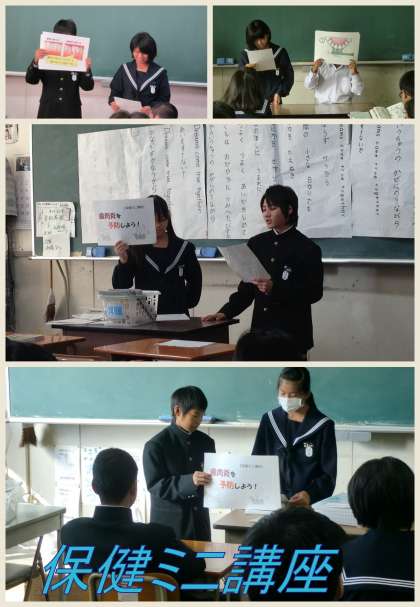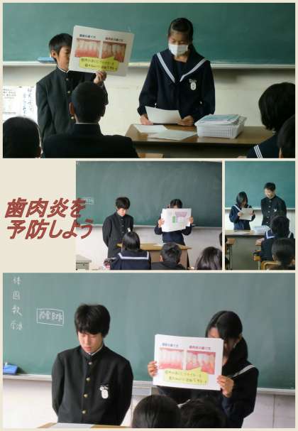 昨日の保健委員会を受けて、今日の朝の会では『保健ミニ講座・歯肉炎を予防しよう』を各クラスの保健委員さんが行いました。