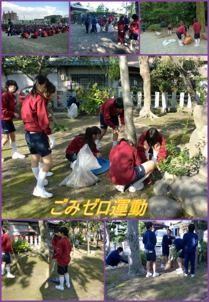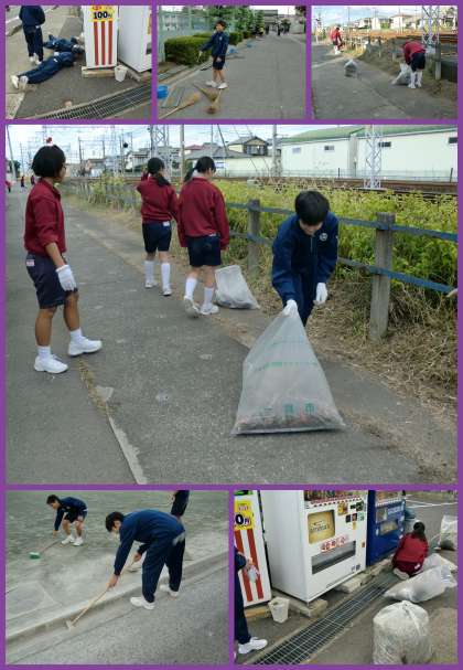 今日はごみゼロ運動の日です。昨年までは、11月の中旬に行っていましたが、市内の活動の期間に合わせることにしました。生徒の皆さんは、朝からジャージや体操服で登校し気合を入れていただけでなく、1限の道徳でも「郷土愛」や「環境保全」等について話し合ってきました。その結果が午後の運動につながったわけです。生徒会長さんや校長先生の言葉を受け、それぞれが自宅に近い活動場所へ向かい活動をしました。地域の方や学校運営協議会の皆さんにも参加をいただき活動を終えました。活動の期間が市の活動の期間と同じと言うことで、ごみがほとんどないような場所もありましたが、それぞれに工夫をして、草を抜いたり、側溝の掃除をしたりしました。
