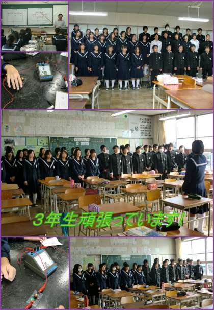 合唱コンクールは明後日と迫りました。今日は、3年生の皆さんが教室に招待をしてくれました。さすがは3年生。アカペラでの合唱の披露ですが、指揮者の指揮に全員の心がそろっていました。先週聞いた歌声より格段と上達していました。明後日の本番が本当に楽しみです。ぜひ、木曽川体育館へお越しください。