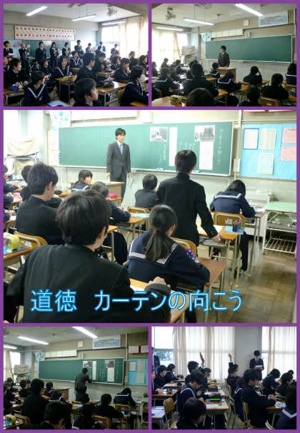 理科と道徳の授業研究が行われました。2個の豆電球を流れる電流の値を測定し、直列と並列の場合の電流の値の決まりを見つけ出す授業でした。また、道徳は「人間の本当の思いやり、優しさとは?」を問う感動的な資料でした。授業後は、授業を見学した先生が集まり研究協議を行いました。