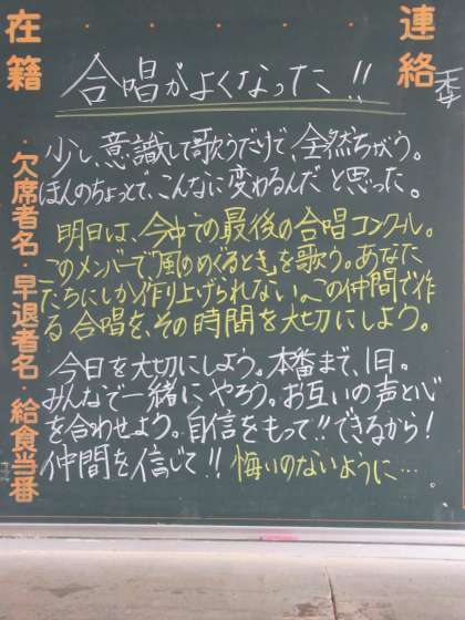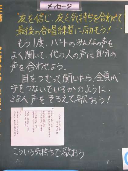 今日のために、がんばってきました。 今日までに積み上げた絆を かみ締めて、 歌おう!