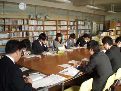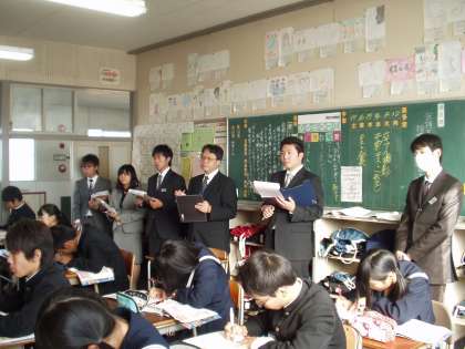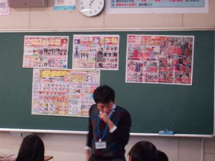 社会科の授業研究を行いました。市内の2・3年目の若い先生(10名)が授業を参観しました。これからの授業をよりよいものにしようと必死にメモを取っていました。今日の授業の内容は、「消費者の権利」についてです。実際に広告を見せて「半額」や「限定」など、文字が大きく強調されている点、クーポン券がついている点などに気づきました。消費者が広告によって知らない間に、品物を選ばされていることに気づいてもらうための導入でした。また、板書の仕方も工夫されていて、重要語句は穴埋め式になっていて、自分で教科書を読んで記入するようになっていました。若い先生方にとって、大いに参考となる授業になりました。授業参観後は研究協議会を行いました。授業者が質問に答えたり、授業の極意が伝えられたりしました。