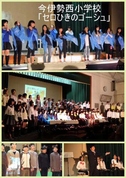 西小学校では、「セロ弾きのゴーシュ」を見事に演じきっていました。またお父さんたちの協力で「餅つき」も行われており、地域の協力を強く感じました。