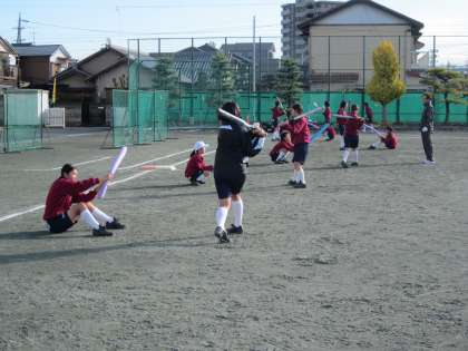 そんな寒さの中でも、今中生のみなさんは元気です。屋外では、早朝からサッカー部、ソフトボール部、ソフトテニス部がいい汗を流しています。体育館ではバスケ部が活動中です。また、今日は多くの高校が学校見学会を開催しており、本校の3年生も多数参加しています。