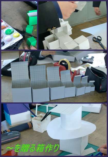 2年生の美術では『贈る箱』を作っていました。自分の思いが入った箱を、デザイン画を元に実体化させています。さて、どんなものを贈ってくれるのでしょうか?