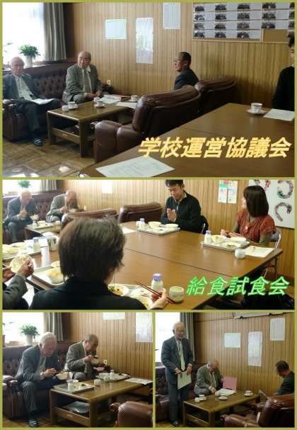 学校運営協議会が、校長室で開かれました。現在学校で行われている人権週間の取り組みを説明した後、3学期に予定されている各種アンケート内容などについて審議いただきました。今日は、給食試食会も兼ねていましたので、途中給食をはさんで会議は続きました。2学期の学校の様子や直面しているさまざまな問題について、解決へ向けての示唆をいただきました。