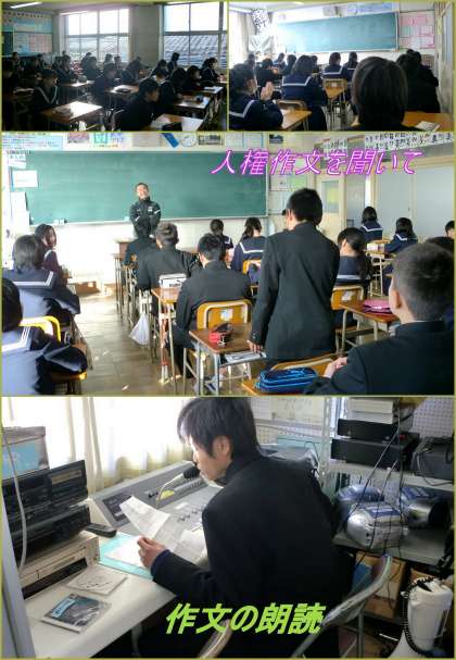 保護者会のため中断していた、人権週間の取り組みの一つである、生徒会役員による人権作文の朗読を聴く会が再開されました。
