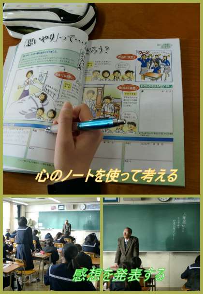 今日までに4つの作文を全校生徒が聴きました。一人一人感想は異なれども、いじめや差別が人間として悲しむべきことの一つであることはよく染み渡ったと思います。道徳の時間に感想を述べているクラス。心のノートを使って思いやりを考えるクラス。聴きっ放しに終わらないことが大切です。ご家庭でも、この話題が出るようならとても嬉しいことです。
