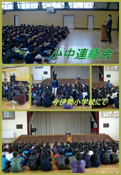 今伊勢小学校の6年生の児童の皆さんを対象に、中学校の生活についての説明会を行ってきました。万引き防止集会に引き続いての会で、時間的にも長くなりましたが、最後までしっかりと聞いていた小学生の皆さんの姿が印象的でした。中学校への質問も出してくれ、中学校への期待の大きさが伝わってきました。