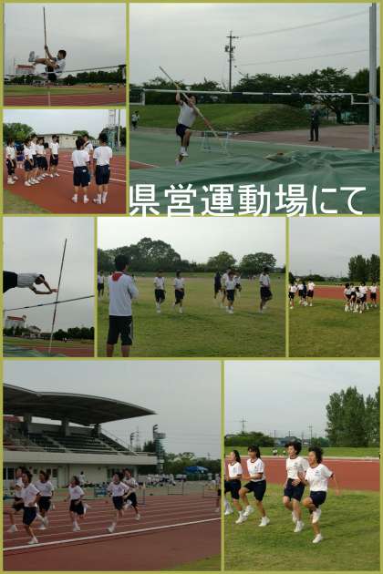 市の陸上大会は、来月の9日です。期日が迫ってきたので、午後の部活動の時間を使って本番と同じ県営一宮運動場へ出かけ練習を重ねています。本番同様の高跳びは、特に練習になります。また、トラックの材質も全く違い、スパイクの履き心地や使い勝手を確認できました。