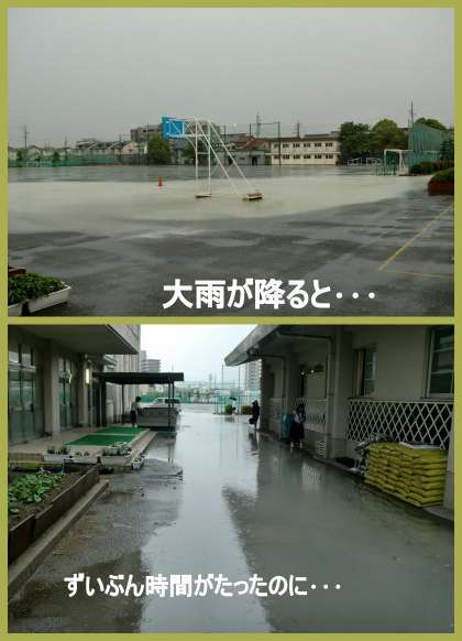 6月7日 急な雨 公開日 2013/06/07 更新日 2013/06/07 お知らせ 天気予報どおりに、突然の雨が雷を伴って降ってきました。急きょ下校を中止し、生徒を校舎内に引き上げ雨や雷が収まるのを待ちました。自然には、かなわないと当たり前のことを感じます。運動場もあっという間に大きな水溜りに化けました。