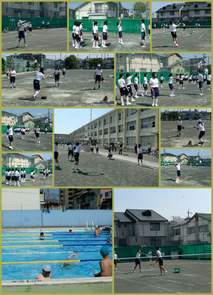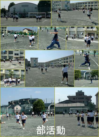 6月8日 部活動 公開日 2013/06/08 更新日 2013/06/08 お知らせ 部活動懇談会の最中から、生徒の皆さんは部活動に取り組んでいます。気温はうなぎのぼりで、熱中症が心配される中ですが、キャプテンや顧問の先生の指示のもと安全に留意しながらの活動が続けられています。今日の部活動は、公開ですから見学してみえる保護者の方も多く、生徒の皆さんのテンションもかなりあがっています。