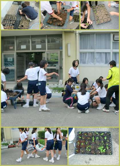 6月12日 サルビアの移植 公開日 2013/06/12 更新日 2013/06/12 お知らせ 生徒会の緑化委員会を中心に育てているサルビアの苗が大きくなってきましたから、黒いポットへ植え替えを行いました。期末テスト終了後には大きな植木鉢に植え替える予定です。 部活動は、1年生も長い時間参加して行われています。どこの部活動へお邪魔しても、元気の良いあいさつをしてくれることをとても嬉しく思います。あんまり嬉しかったので、たくさんの写真を載せ過ぎ、画像が小さくなってしまいました。