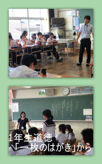 1年生の道徳の様子です。今日のテーマは「礼儀」。資料は「一枚のはがき」でした。