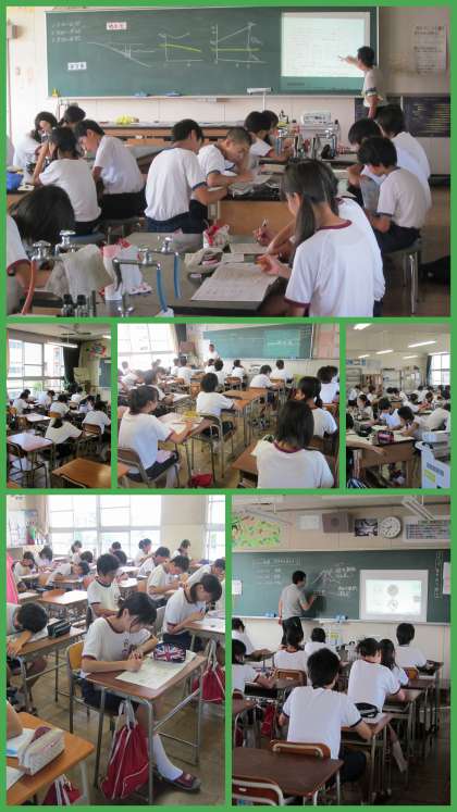 今日もたいへん暑い日となりましたが、午前中に3年生の希望者が集まり補充学習が行われました。3年生の教室や理科室では、真剣な眼差しで先生の話を聞き、ポイントをしっかりノートへ書きとめようとする3年生の姿が見られました。受験生にとって、苦しい夏がまだまだ続きます。