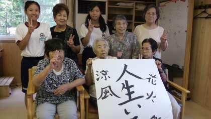 「まごころ」では、施設の方の手ほどきを受けながら、習字や絵で利用者の方々と「夏の風物」を表しました。上手にできたと思います。そして、記念撮影。みんなで制作をする中で、一体感が生まれました。