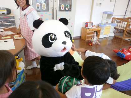 「おもちゃ図書館」では、玩具や着ぐるみなどを活用して、小さな子どもたちを笑顔いっぱいにしました。