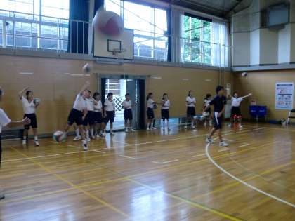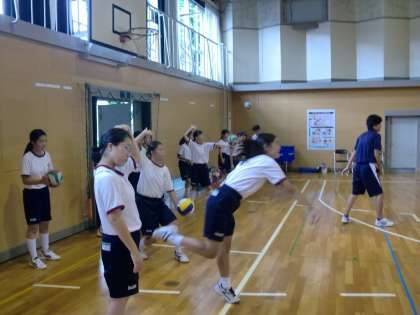 屋内運動場では、男女のバレーボール部が練習に励んでいます。昨年のチームと比べ、今年は声がよく出ているのが特徴です。特に男子は、細かいパスやレシーブの練習の時間だったからでしょうか、声をかけあいながら真剣にボールを追っていました。新人大会の組み合わせも決まり、ますます練習に力が入ることでしょう。