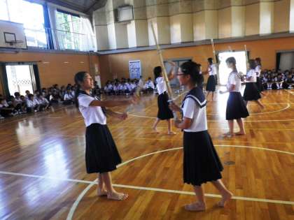 その後、各部活動から練習時などに取り組んでいるプレーや声だしなどを披露しました。どの部活動も時間がない中で工夫を凝らし、周りからの声援を浴び頼もしい姿が見られました。