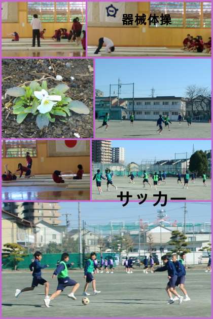 運動場ではサッカーを武道館ではマット運動を2年生の皆さんが行っていました。体の動きも、気温の上昇とともに軽くなっているようです。