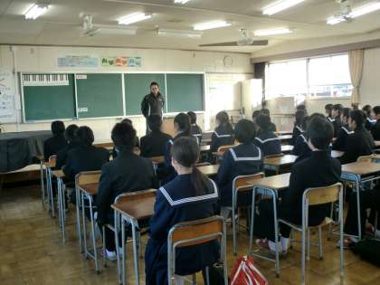 明後日の試験日を前に、私立受験の生徒さんが音楽室に集まり、校長先生から激励の言葉を受けました。