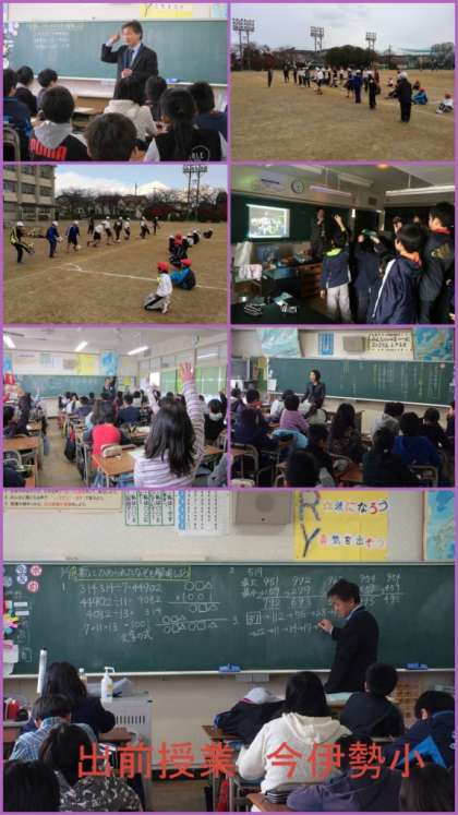 午後の1時間、今伊勢小、今伊勢西小学校に出かけてきました。4月から入学してくる6年生のみなさんに向けて、本校職員が出前授業を行いました。