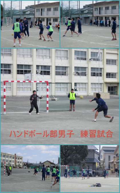 グランドではハンドボール部男子のみなさんが、大和中と天王中と練習試合を行っていました。しっかりと守って速攻を仕掛けて得点を重ねていました。ソフトボール部は走塁練習をしていました。